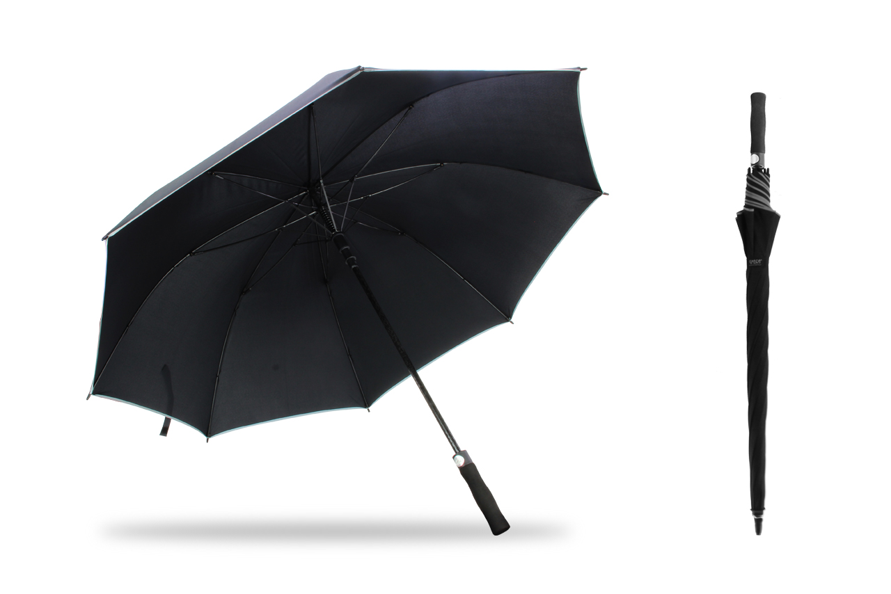 30" ( diameter ) umbrella with solid matt finishing . Each packed in a self fabric pouch and an OPP bag.