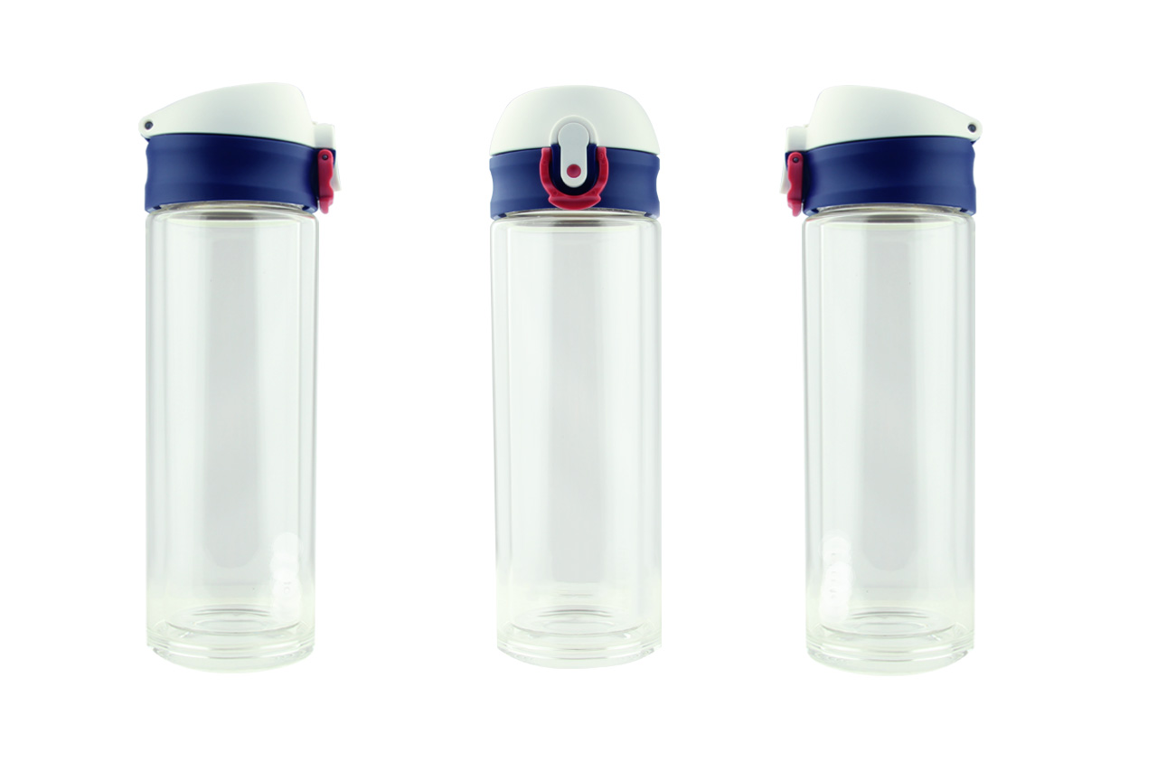 Double wall glass flask . Capacity : 330ml . Dimension : 210(H) x 64(D) . Each packed in a white box.