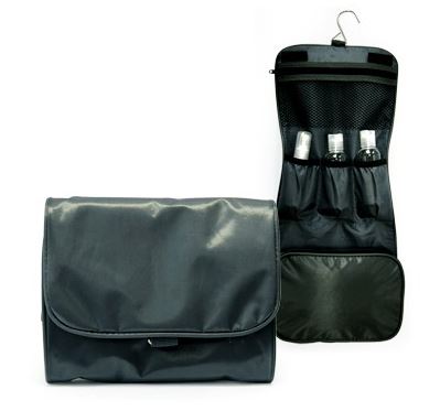 Description: Functional toiletries bag with several pockets and compartment. It also comes with a hanger for convenience