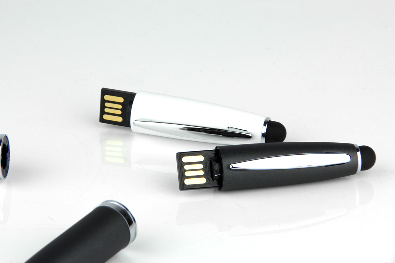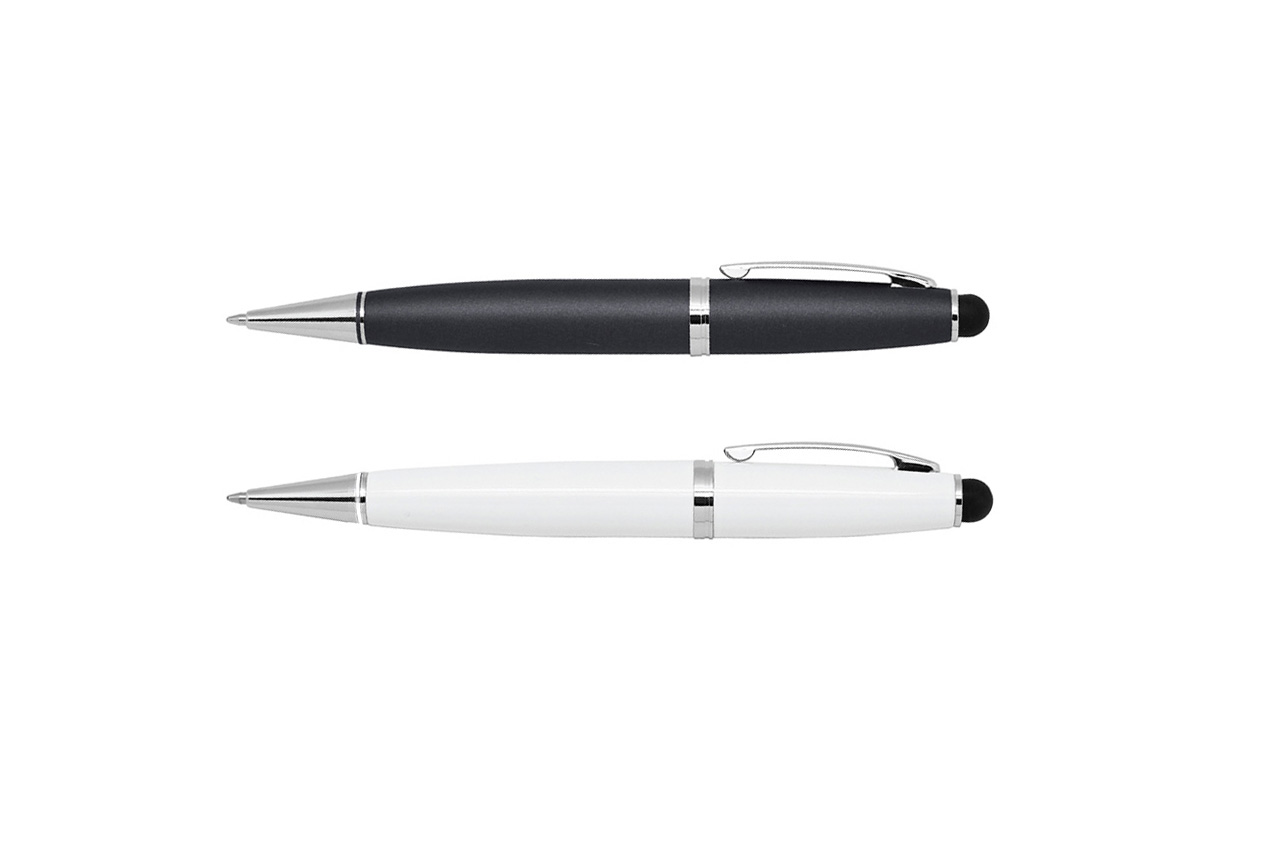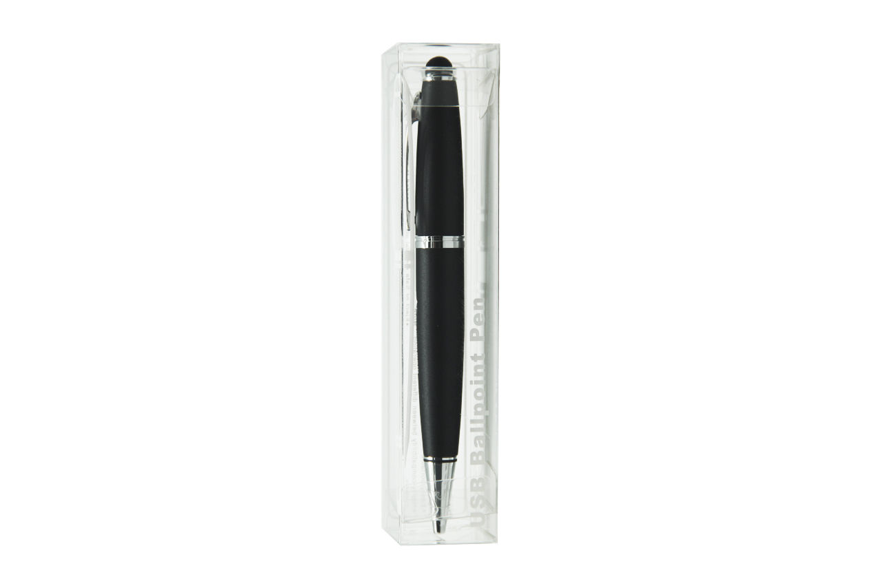 USB Flash Drive w/ Ball Pen & Stylus . Capacity : 16GB . Material : Metals . Warranty : 6 months . Each packed in a printed transparent PVC box.