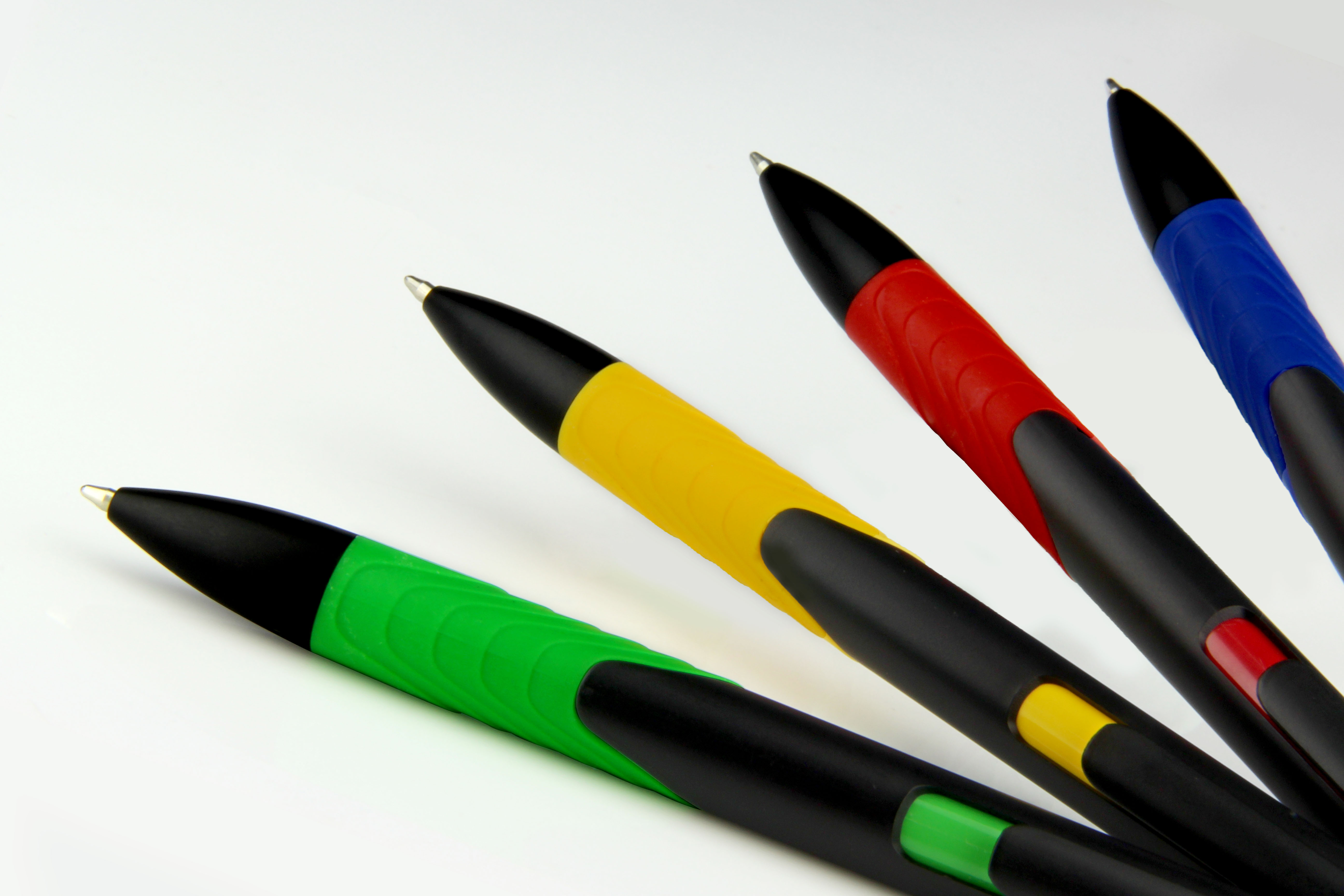 A Plastic Ball Pen that comes in 4 different colours ( RED, YELLOW , GREEN AND BLUE ) .