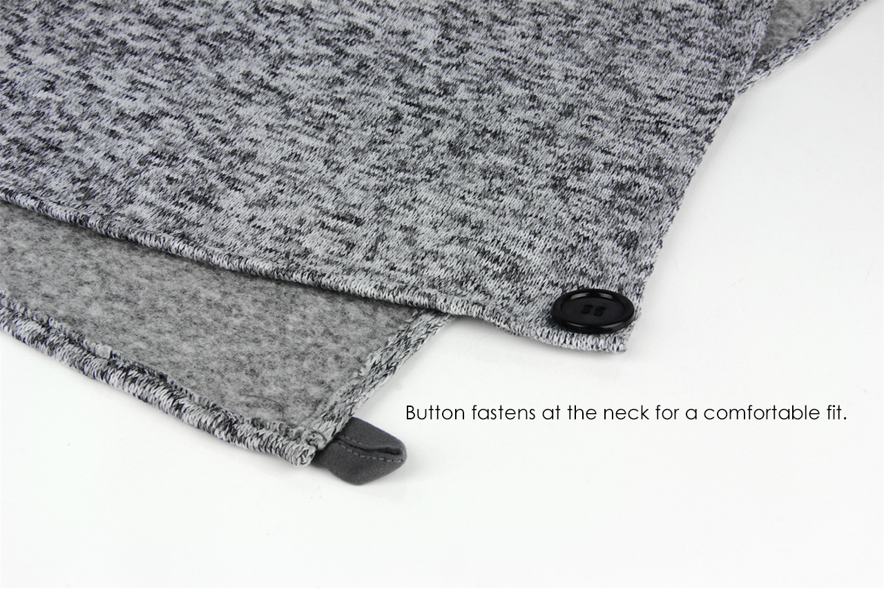 Buttons secure around the neck for convenience while seated