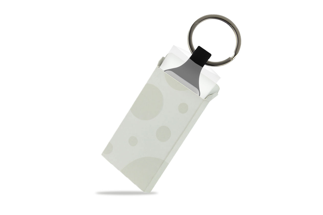 Metal key holder with solid matt finishes . Each packed in a CPE bag and Spot UV artcard white box .