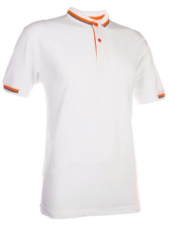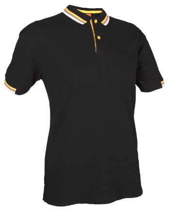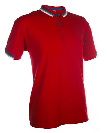 Features contrasting colours and stripes along collar, cuff and button